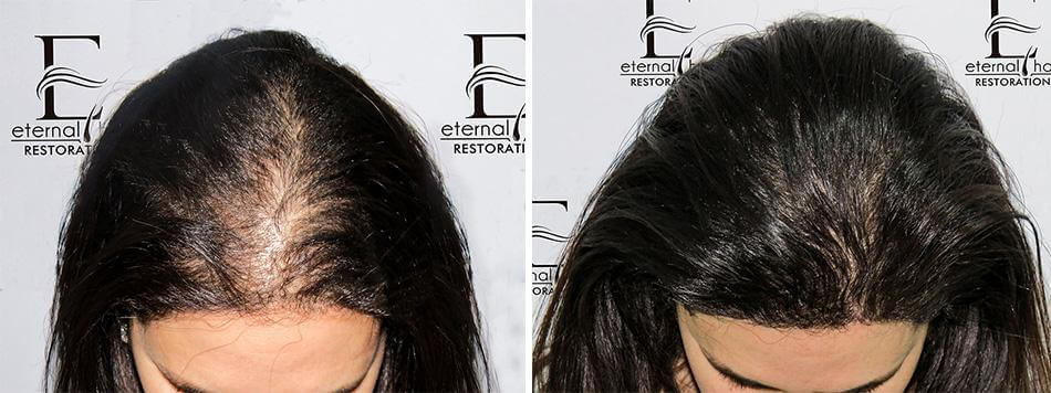 After 2 sessions of Platelet Rich Plasma (PRP) Hair Restoration Therapy and 2 months of Nutrafol supplements
